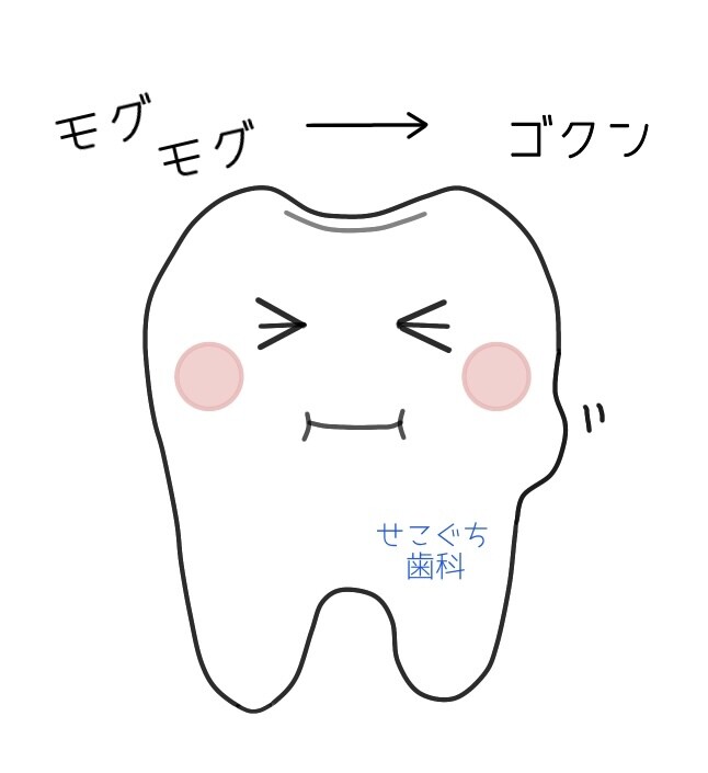食べ物を正しく噛むには、前歯で食べ物を噛み切り、舌の力を使って口の中に送られ、口を閉じた状態で奥歯でしっかり噛み、すり潰してから飲み込みます☆