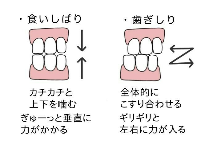睡眠中、無意識に強い力で噛み合わせたり、ぎりぎりとこすり合わせてしまう事があります(>_<)